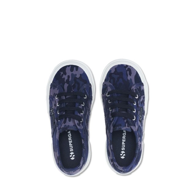 superga 2750 לילדים: חלק עליון בכותנה קמו מודפסת עמיד למים, בטנה במיקרופליסה וסוליה חיצונית בגומי טבעי מגופר.
