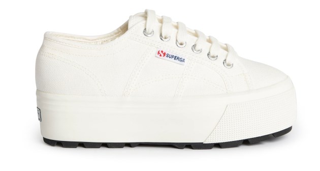 הסופרגה 2790 האייקונית עם סוליה שטוחה בגודל 4 ס"מ מקבלת פרשנות מחודשת עם חלק עליון מבד כותנה וסוליית זיז מיכל ייחודית, המובחנת בעיצוב כפול מובלט.